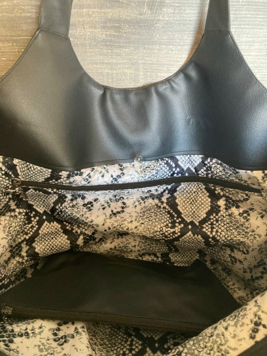 Женская вместительная сумка из кожзама. ⠀ Плотность материала 500 гр/м2, 100% ПВХ. ⠀ Устойчивость данной сумки к истиранию 40000 циклов по тесту Мартиндейла (https://ru.m.wikipedia.org/wiki/Тест_на_истирание) ⠀ Закупаю лучшие варианты современной экокожы, которые устойчивы к механическим и световым воздействиям, легко чистятся мягкой губкой и мыльным раствором. ⠀ Комплекс состоит из большой косметички-кошелька и вместительной сумки с внутренним карманом на замке. ⠀ Длина сумки 45 см, высота 35 мм без учета ручек. Длина косметички 25 см. ⠀ Подкладка «питон». ⠀ Дно снабжено пуклями (фурнитура ножки для сумки), дно укреплено кожкартоном. ⠀ Стоимость комплекта сумка+косметичка 2500₽